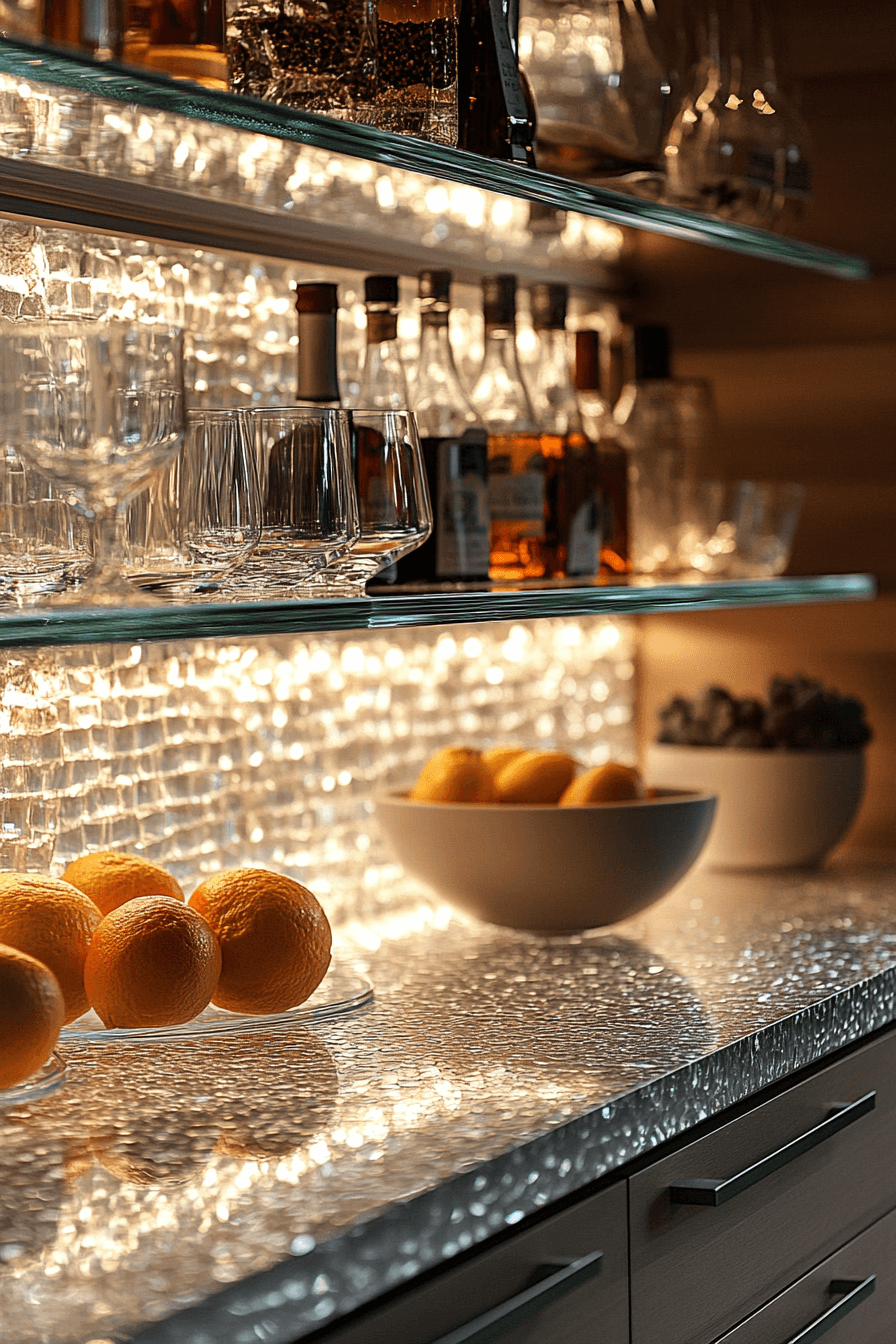 A glass and stone minimalist kitchen brings together transparency and texture for a balanced aesthetic. Glass shelving or panels keep the design light and open, while stone adds grounding and durability. This pairing creates visual interest without adding visual clutter. It’s a high-end look that still respects the simplicity of minimalism. The result is refined, modern, and quietly dramatic. Want to see more glass and stone combos for your minimalist kitchen? Click now.