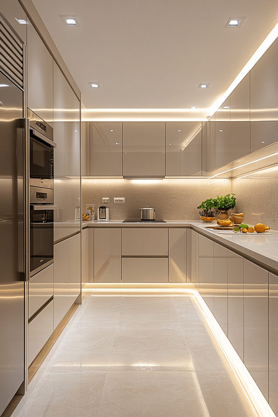 A high gloss minimalist kitchen adds a sleek, modern edge by reflecting light across its surfaces. The shiny finish enhances the sense of space, making the room feel larger and more polished. It’s a favorite for modern apartments and contemporary homes alike. Glossy cabinetry and counters create visual drama while staying simple. It’s all about contrast between reflection and restraint. Explore how gloss can elevate your minimalist kitchen—tap here.