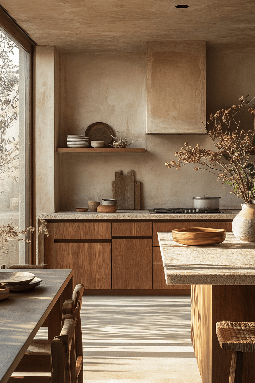 Japandi kitchen style fuses Japanese simplicity with Scandinavian warmth, creating a tranquil minimalist kitchen. Natural wood, low profiles, and clean lines define this look. The palette typically includes muted earth tones and soft neutrals. This style prioritizes intentional design and emotional calm. It’s ideal for those seeking both minimalism and soul in their cooking space. Tap here to embrace Japandi style in your minimalist kitchen.