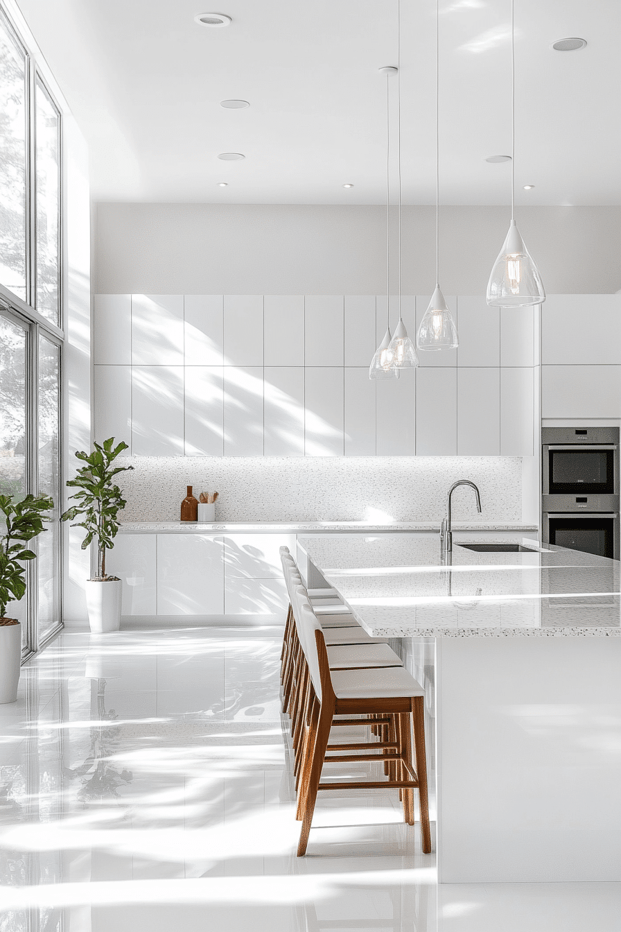 An all-white minimalist kitchen brings a sense of purity and openness that instantly brightens the room. This design reflects natural light beautifully, making even small kitchens feel expansive. By using minimal detailing and handleless cabinetry, the space remains visually serene. White-on-white textures add depth without disrupting the flow. The look is clean, timeless, and calming. Discover how to achieve this effortlessly radiant minimalist kitchen—click for more inspiration.