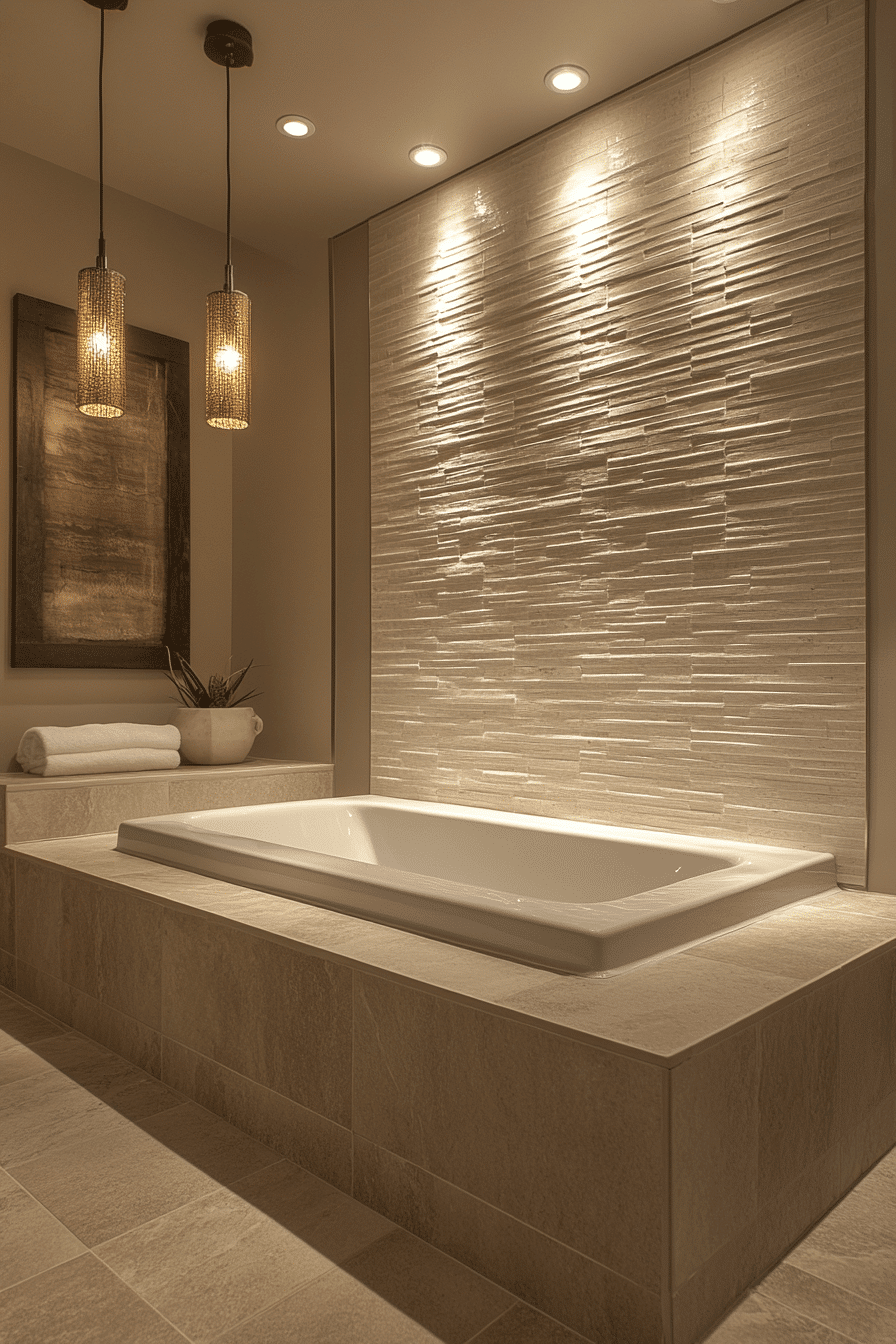 Texture adds depth to modern bathroom ideas, even with a neutral palette. Layered stone, tile, and wood elements work harmoniously. Floating vanities and frameless mirrors maintain sleekness. Accent lighting highlights the variety of surfaces. The result is cozy yet contemporary. Tap here to see neutral textured modern bathroom inspirations.