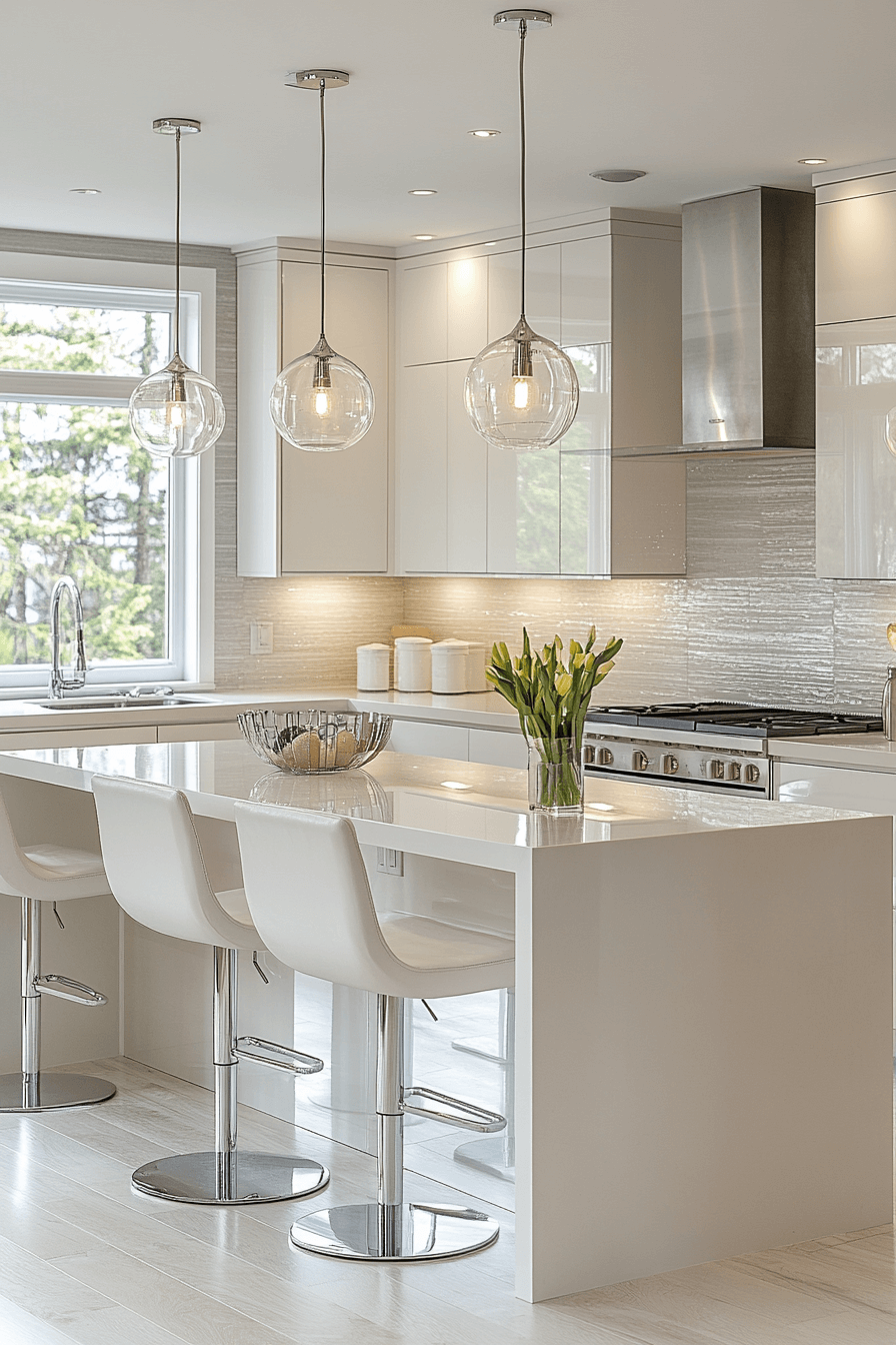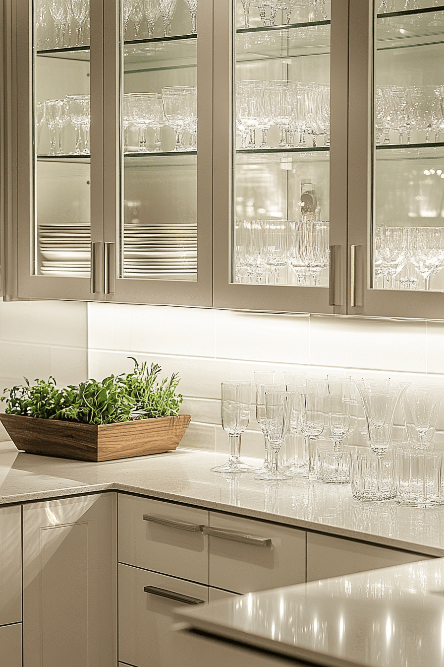 Glass-front cabinetry introduces refinement and lightness to modern kitchen cabinet design. Frosted or clear panels create depth while maintaining sleek lines. These cabinets allow stylish dishware or décor to be subtly displayed. Soft lighting inside enhances the effect beautifully. Glass fronts work especially well in smaller kitchens to expand the sense of space. Click here to see elegant glass-front cabinet inspirations.