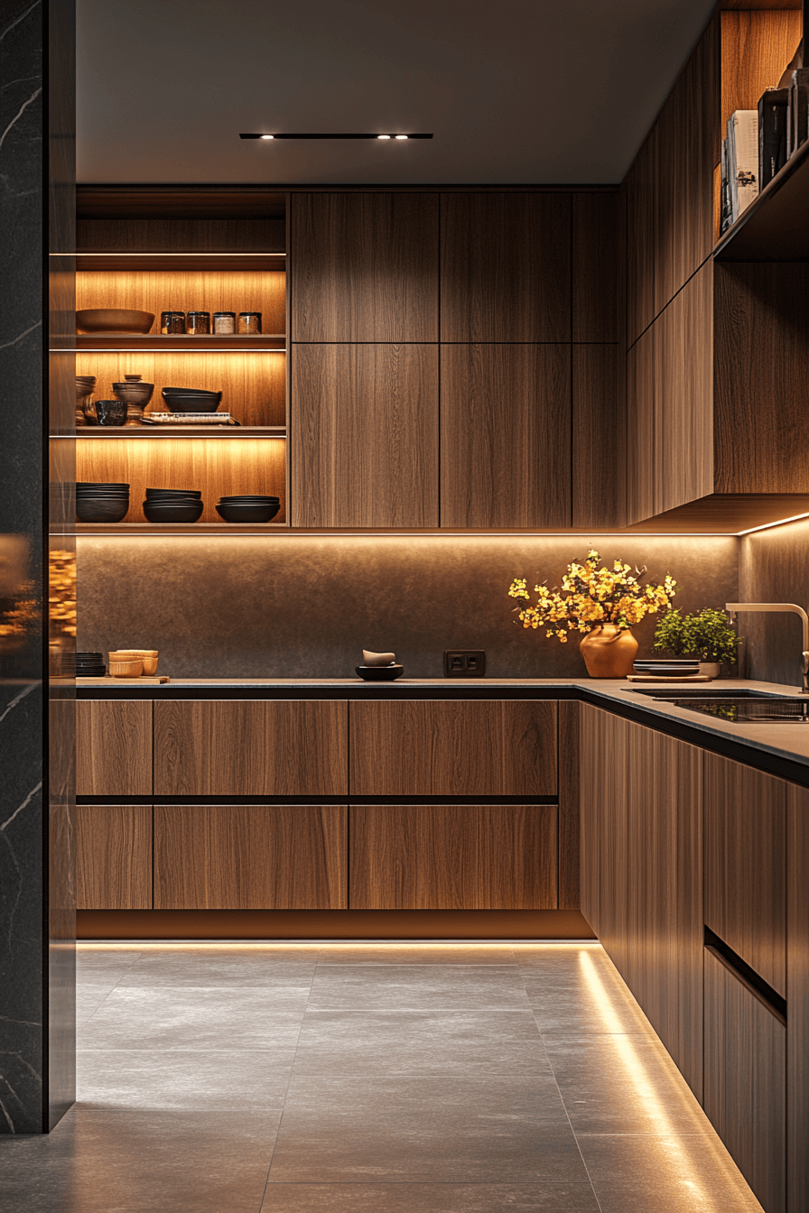 Wood grain finishes bring natural warmth into modern kitchen cabinet design without feeling rustic. Sleek veneers in walnut, oak, or ash offer texture with a modern twist. Pairing these cabinets with neutral countertops creates a clean and stylish balance. Linear grain patterns add subtle visual depth. The result is cozy yet contemporary, blending modern function with timeless style. Tap here to explore modern wood grain cabinet ideas.