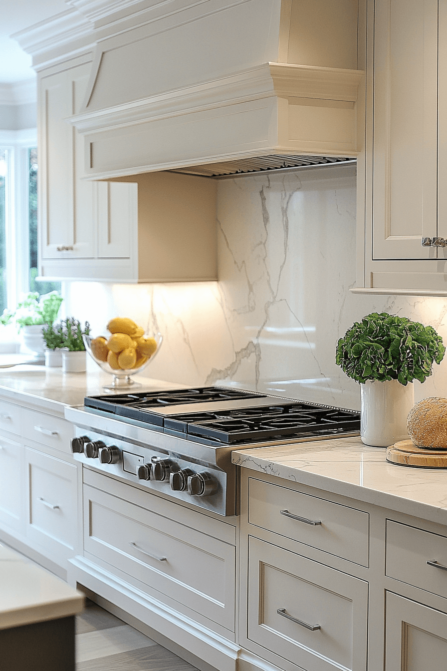 Cream cabinetry softens the aesthetic in modern kitchen cabinet design. The warm undertone makes the kitchen feel cozy yet fresh. Sleek finishes ensure the look remains modern. Paired with glossy counters, cream cabinets feel bright and timeless. Metallic fixtures add the perfect final touch. Tap here to explore cream cabinet inspirations.