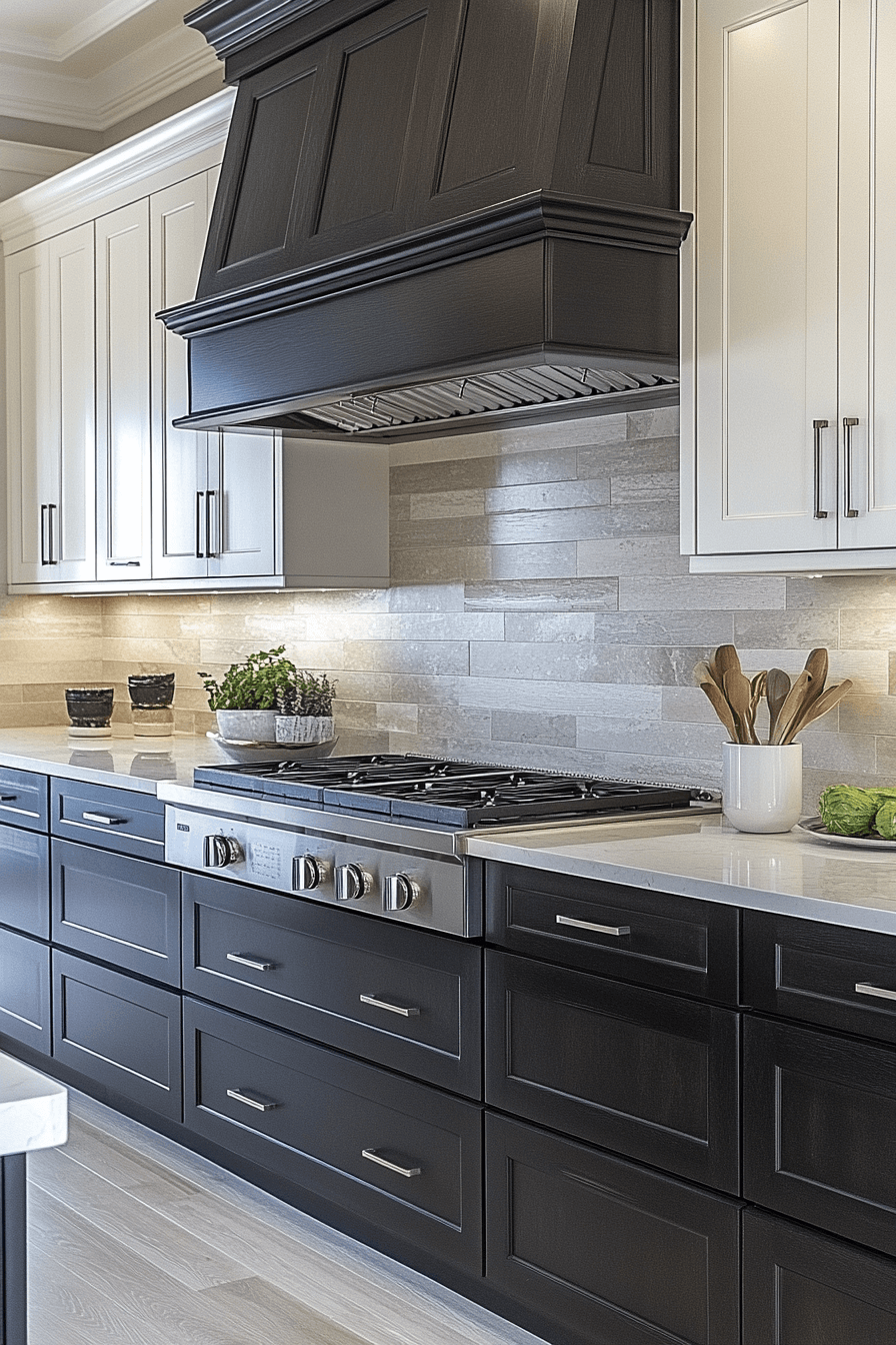 High-contrast styles add drama to modern kitchen cabinet design. Black cabinets paired with white counters create striking visuals. Clean lines emphasize the bold palette. Subtle lighting enhances the contrast for a dynamic effect. The design feels both stylish and timeless. Click here to see more high-contrast cabinet inspirations.