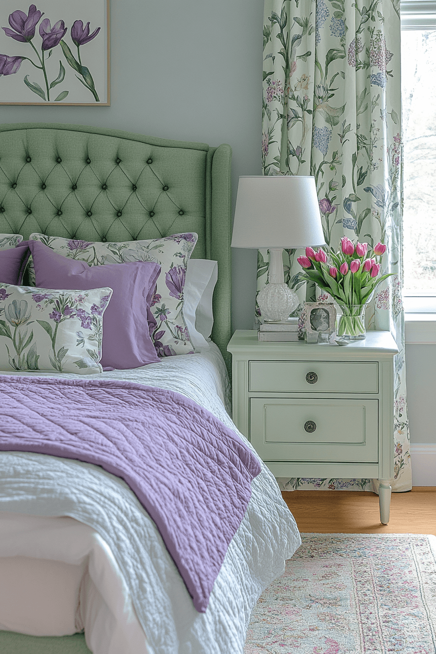 Enchanted color combo is all about embracing the wonder of a purple and green bedroom with unexpected pairings and charming details. Try combining chartreuse with plum or mint with orchid for something totally unique. The contrast adds visual interest while still feeling dreamy. Play with patterns and layering to tell your own color story. This style encourages creativity and a touch of magic. Tap for more inspiration now!