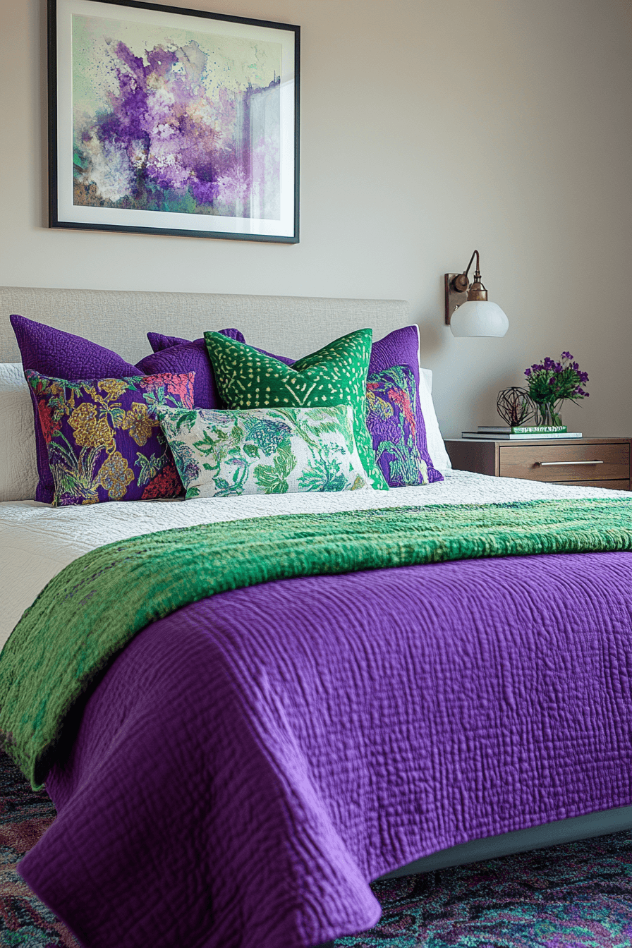 Get ready to fall head over heels for the dreamiest color combo of the year! A purple and green bedroom is where magic happens—think lush botanical vibes meets luxurious jewel tones, all wrapped up in the coziest, most Instagram-worthy space you’ve ever seen. Whether you’re drawn to soft lavender and sage whispers or bold emerald and amethyst drama, this stunning palette brings instant personality and serious style to any room. The best part? Purple and green work beautifully together to create a space that’s both energizing and calming, playful yet sophisticated. From whimsical garden retreats to chic modern sanctuaries, these ideas will have you reaching for paint swatches and mood boards faster than you can say “bedroom goals.” Ready to transform your sleep space into a vibrant, nature-inspired haven? Let’s dive into these gorgeous purple and green bedroom ideas that are about to make your Pinterest boards very, very happy!