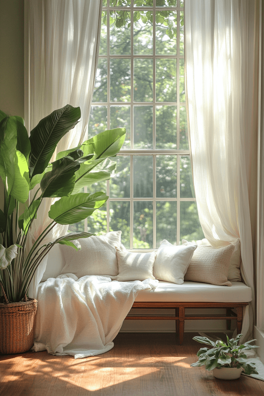 Light-filled reading nook energizes the soul with bright, cheerful daylight streaming through large windows. Sheer curtains soften the glow, creating a welcoming balance between brightness and comfort. Light-toned furniture and pastel accents add to the breezy atmosphere, making the nook perfect for morning reads or afternoon relaxation. The positive energy of natural light keeps the space refreshing year-round. This design shines for readers who love vibrant, uplifting environments that spark joy. Click here to see light-filled reading nook inspirations that glow with charm!