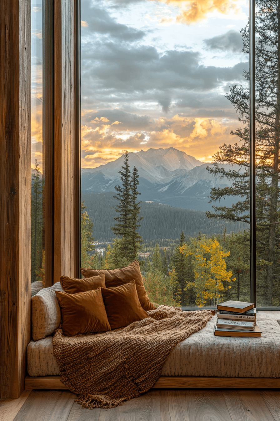 A scenic view reading nook transforms reading into a truly immersive experience by pairing your favorite book with breathtaking outdoor scenery. Large windows or sliding glass doors frame the view, whether it’s rolling hills, a vibrant garden, or a bustling city skyline. Low-profile furniture and neutral décor ensure the landscape remains the star, keeping the nook visually uncluttered. Cozy touches like a soft blanket or a cushioned bench make it just as comfortable as it is inspiring. This design resonates with nature lovers and dreamers who enjoy connecting with their surroundings. Click here to discover scenic view reading nook ideas that bring the outside world in!