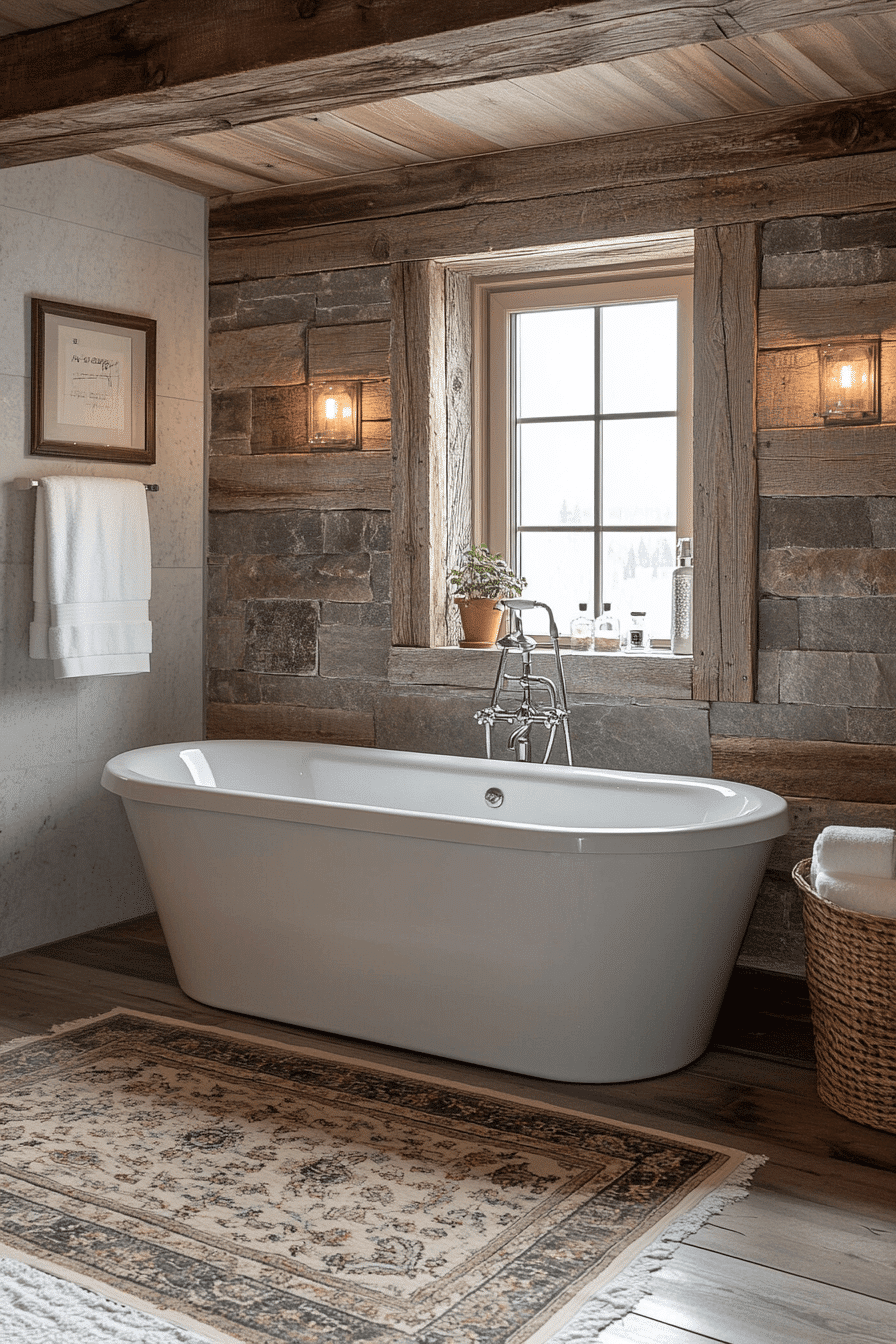 20. Rustic Bath with Freestanding Tub