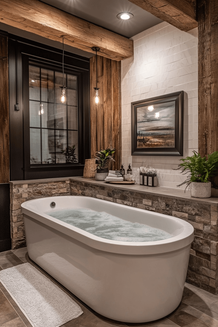 17. Rustic Bath with Warm Lighting