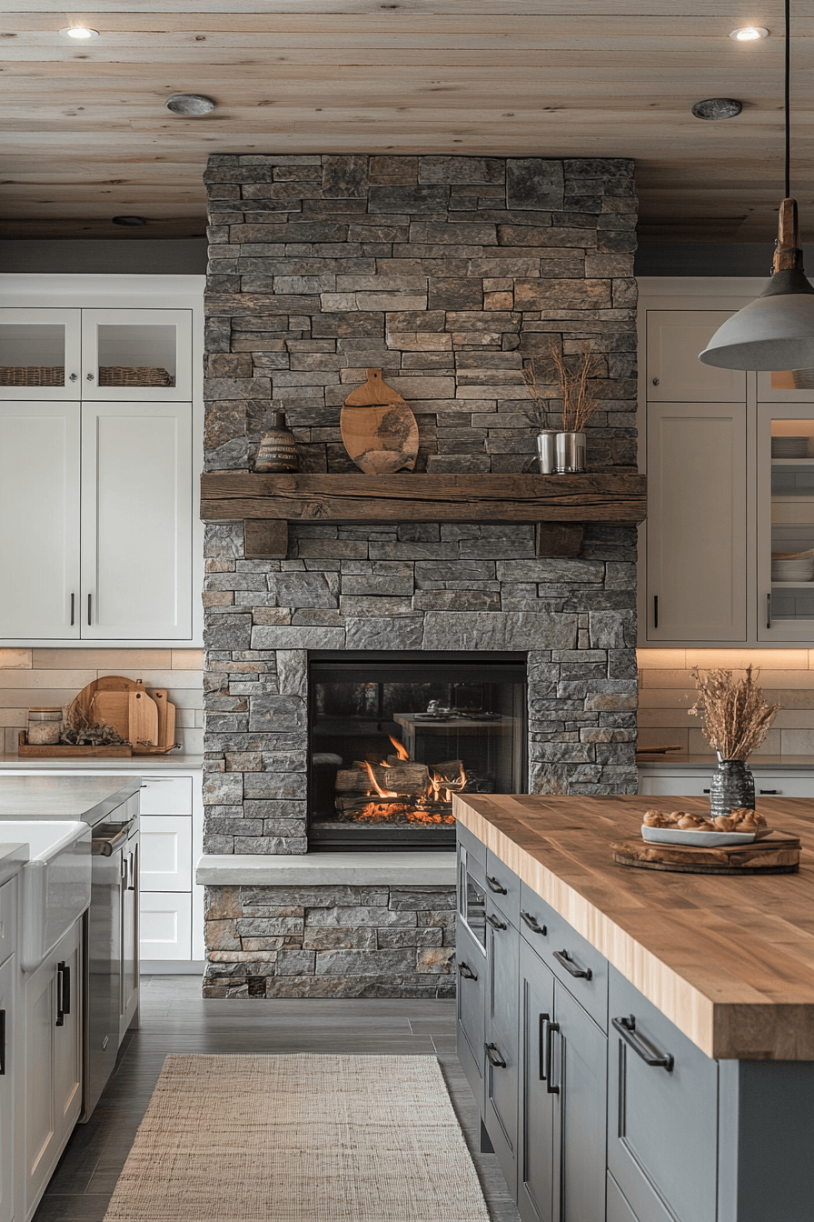 13. Stone Fireplace Kitchen Accent