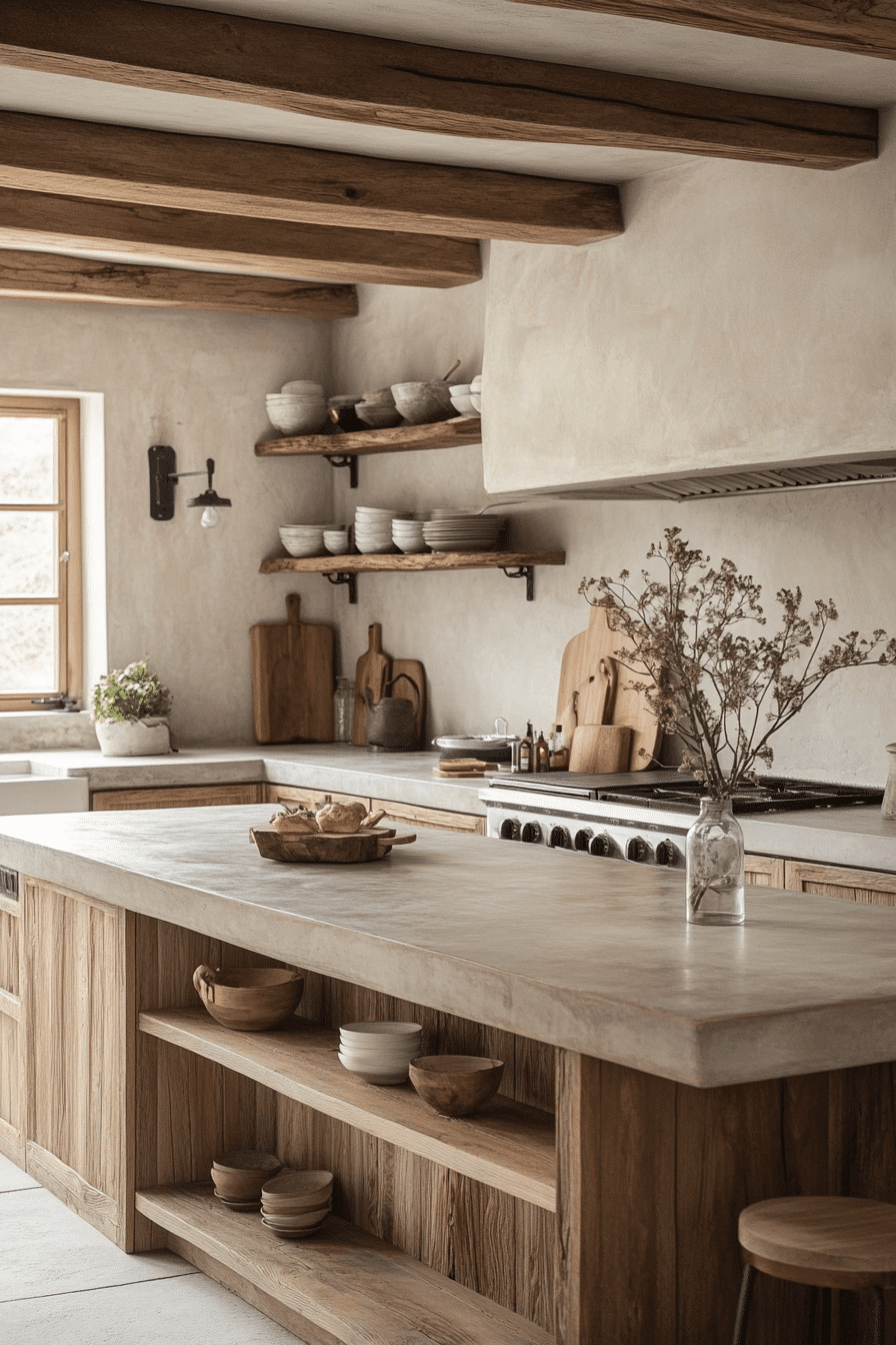 Minimalism blends well with rustic kitchen aesthetics by simplifying layouts. Clean lines and neutral colors keep the room airy and uncluttered. Subtle wood and stone accents provide warmth without excess. Floating shelves and smart storage enhance functionality. The look is timeless yet fresh. Tap here to explore minimalist rustic kitchen inspirations.