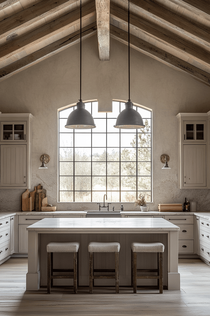 Large islands are rustic kitchen essentials that combine function and style. They provide ample workspace and double as gathering areas. Wood or stone surfaces emphasize authenticity. Neutral cabinetry ties the design together. Lighting highlights the island as the centerpiece. Tap here to explore large island rustic kitchen inspirations.