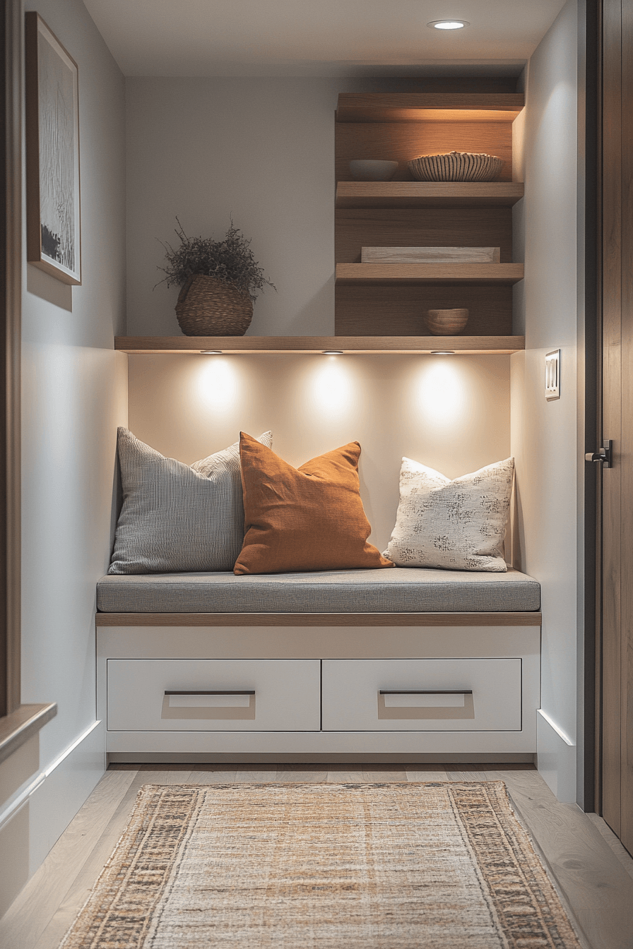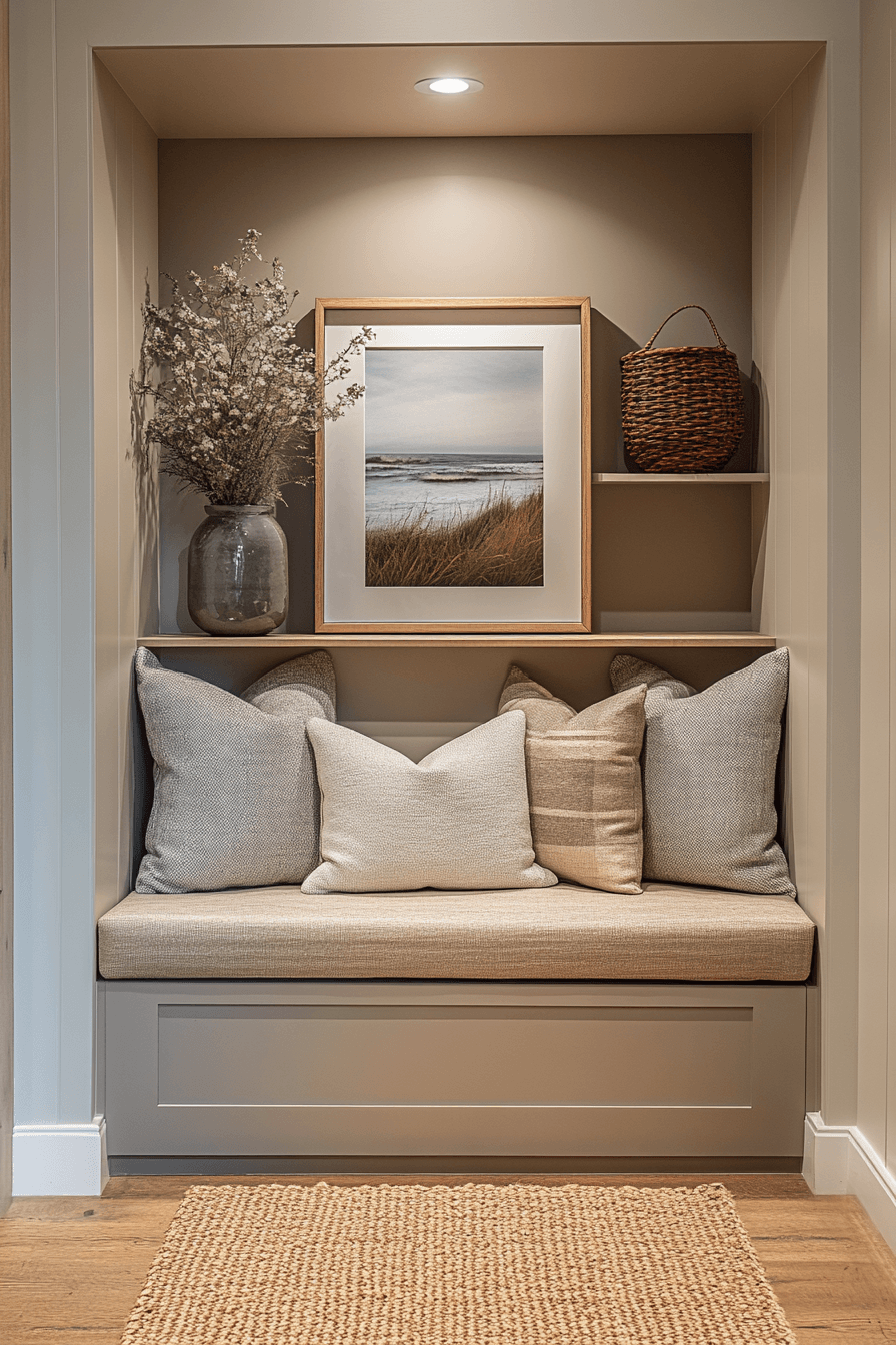 Cozy Entry Moments prove that comfort belongs in every corner of the house. These small entryway ideas create warmth with soft textures, warm lighting, and inviting seating. Even the smallest spaces can evoke a sense of home. Adding cozy details ensures every entrance feels welcoming, not just practical. It’s about creating comfort in the most unexpected spots. Click here to explore more cozy entryway styles!