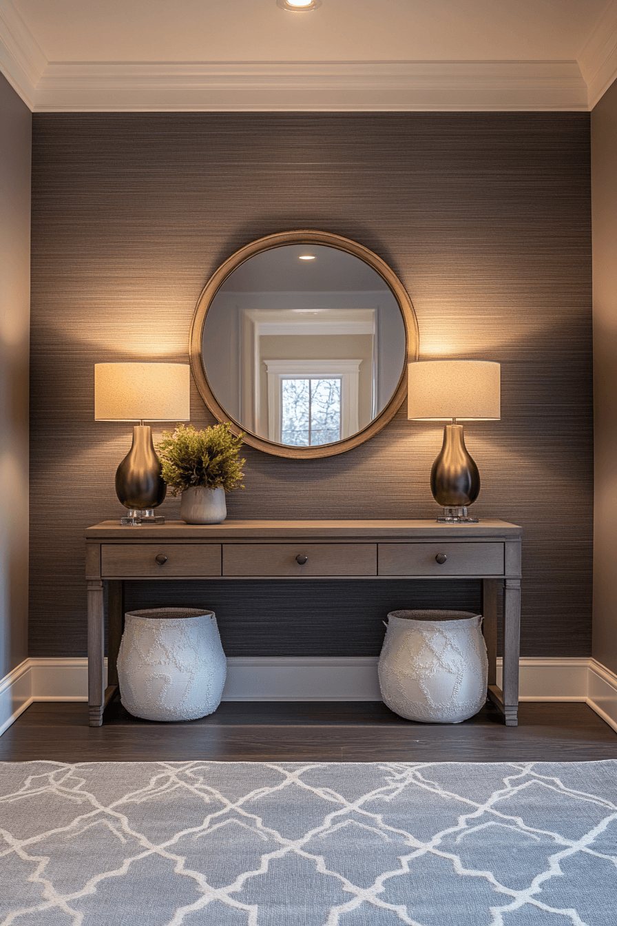 Statement Entry Spaces focus on bold, eye-catching accents. These small entryway ideas use standout mirrors, lighting, or art to create impact. Even small spaces can make big impressions. Statement pieces show personality and style without needing size. It’s proof that small doesn’t mean subtle. Click now to explore more statement-making entryway ideas!