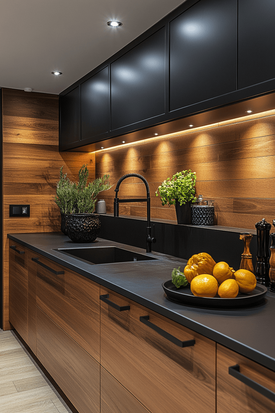 Small kitchen design gets a bold edge with matte black touches. Whether it’s cabinet hardware, faucet fixtures, or light frames, black adds contrast and depth. Paired with white or wood finishes, it’s a chic and grounded combo. This creates visual interest without making the room feel smaller. It’s perfect for adding subtle drama. Click to browse the complete gallery of designs.