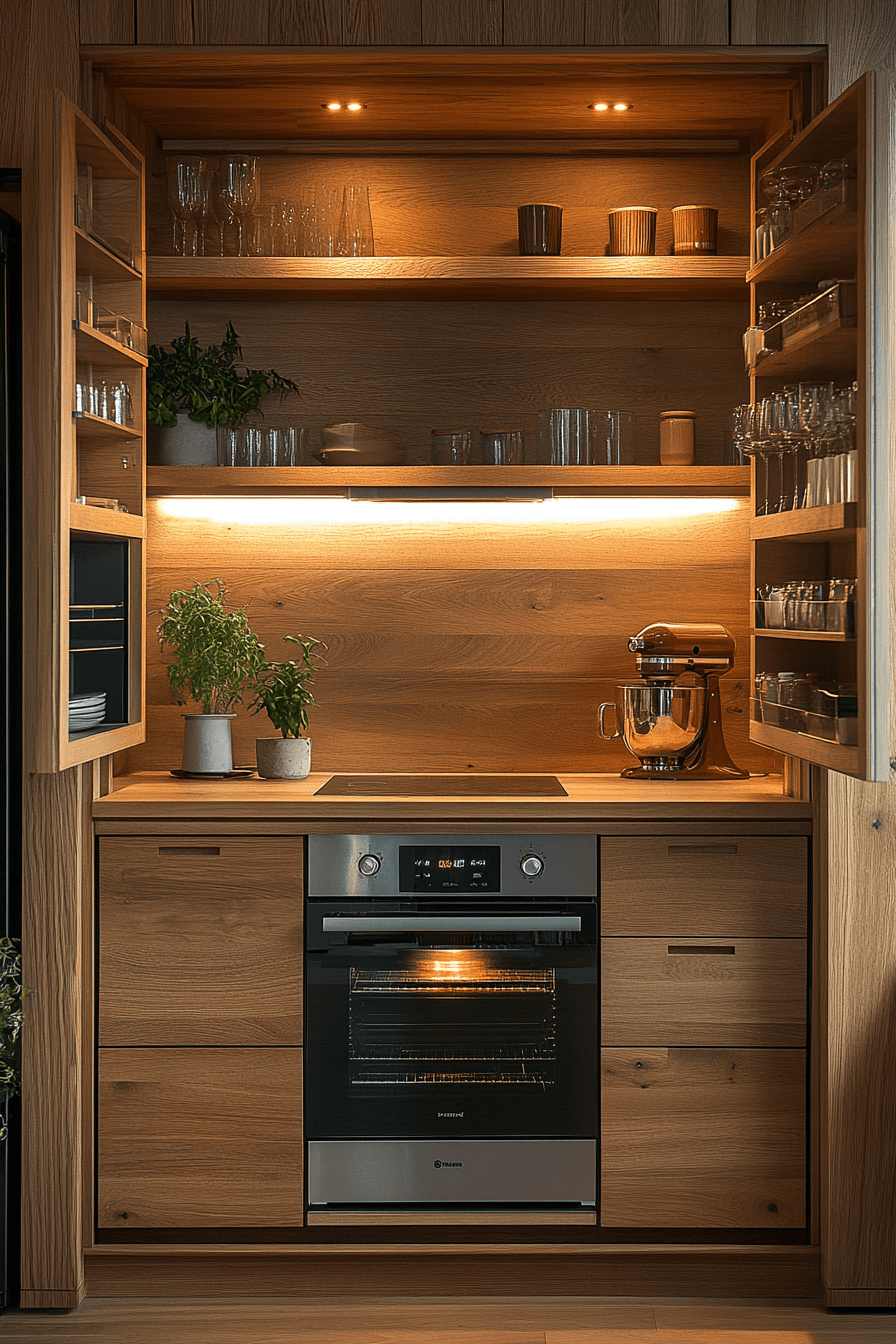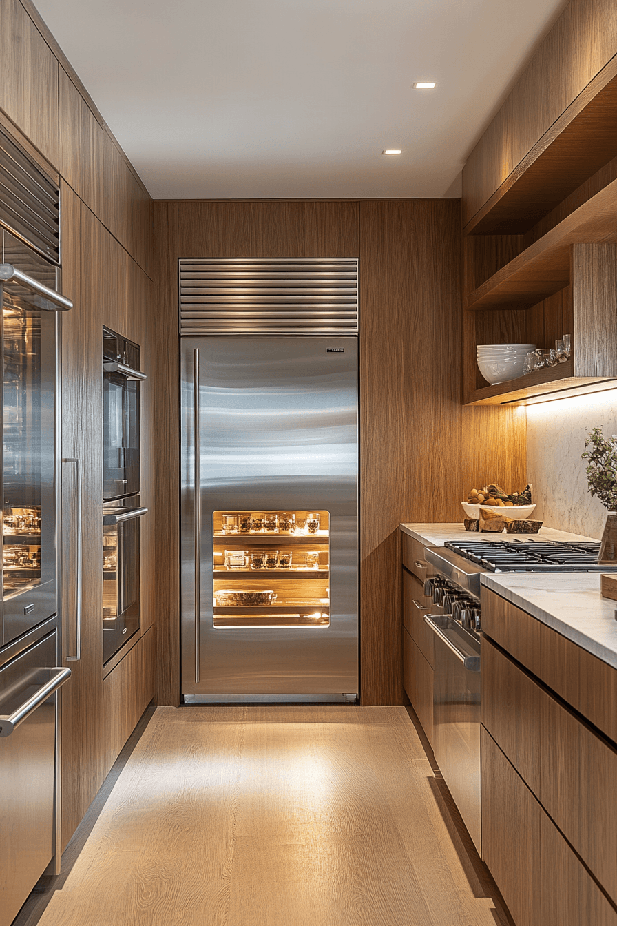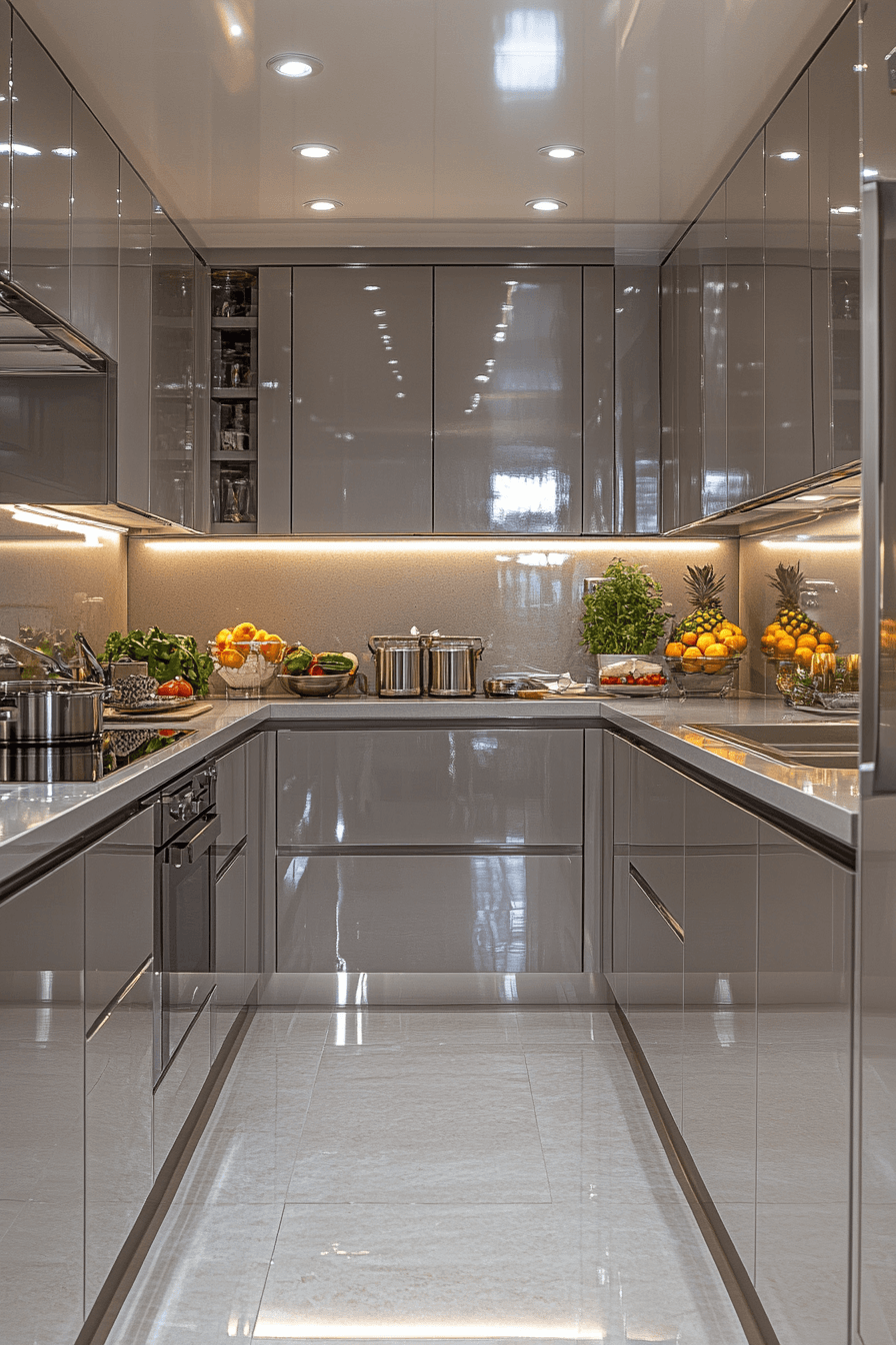 Ultra-modern style makes the most of a small kitchen design with built-in appliances and handleless cabinets. These futuristic touches keep the space looking smooth and high-tech. Glossy surfaces and linear lighting add to the sleek atmosphere. It’s efficient and impressive all in one. You won’t believe how much style fits in. Tap now to see futuristic inspiration.