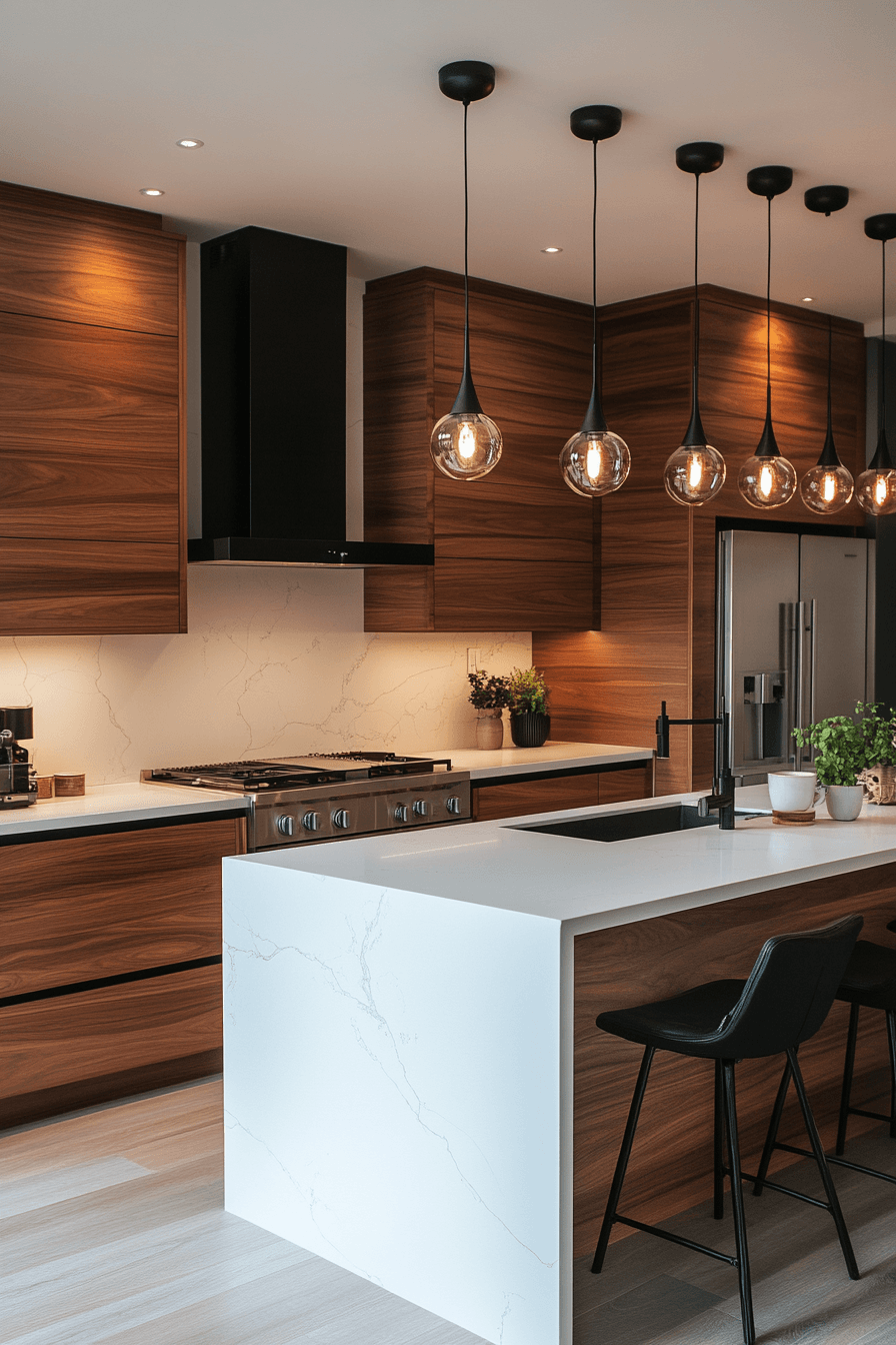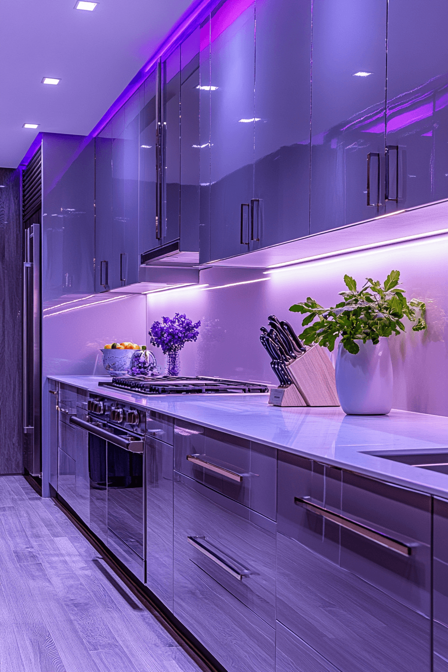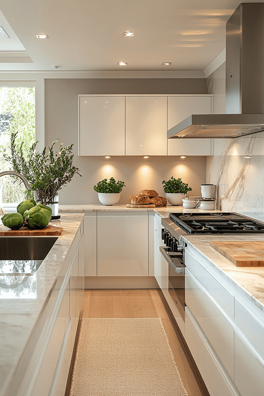 Ultra-modern style makes the most of a small kitchen design with built-in appliances and handleless cabinets. These futuristic touches keep the space looking smooth and high-tech. Glossy surfaces and linear lighting add to the sleek atmosphere. It’s efficient and impressive all in one. You won’t believe how much style fits in. Tap now to see futuristic inspiration.
