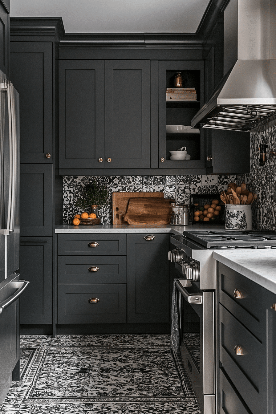 Embracing bold colors or textures in small kitchen design can create an impactful statement without overwhelming the space. Think navy cabinets, gold hardware, or geometric backsplashes. These bold choices add personality while keeping the layout efficient and usable. It’s proof that small doesn’t mean boring—it means intentional. With clever placement, even dramatic design elements can shine. Tap to explore the full list of ideas.