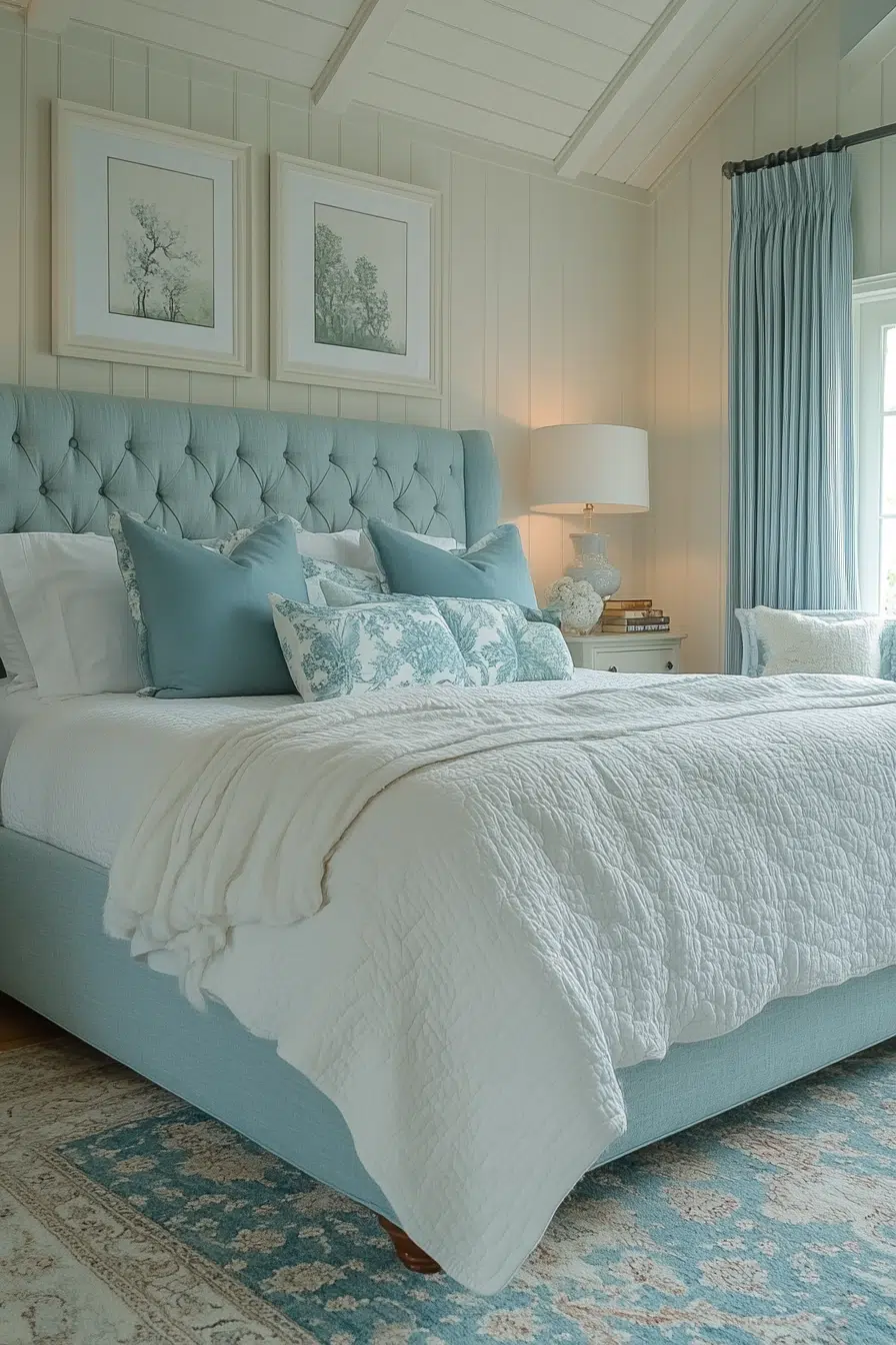 There’s something instantly welcoming about walking into a blue bedroom—it reads as intentional but never stuffy, the perfect balance for a space meant for rest.