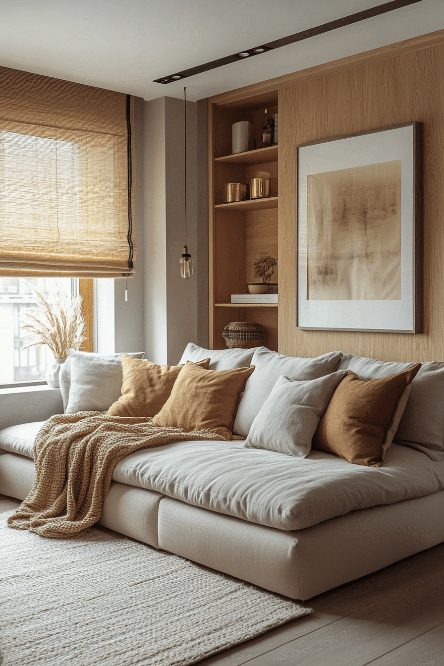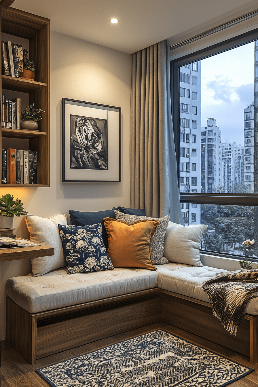 Tiny apartment ideas come alive with cozy corners styled thoughtfully. Soft seating, layered cushions, and warm lighting transform small nooks. Neutral palettes expand the vibe while keeping it intimate. Sleek furniture adds modern flair without overpowering the room. This makes compact areas feel both inviting and stylish. Click to explore more modern cozy corner designs.