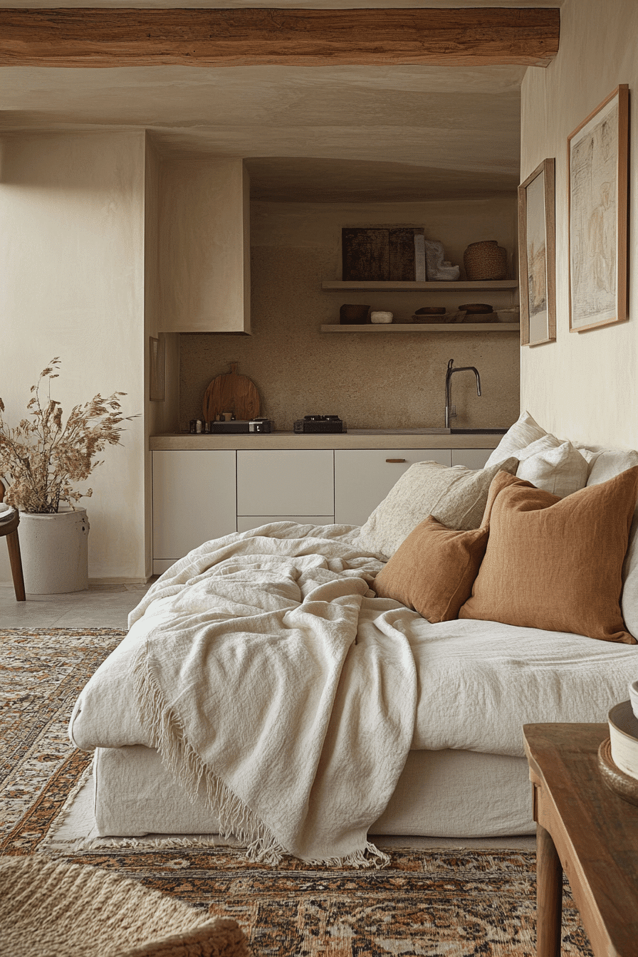 Refined details elevate comfort in tiny apartment ideas. Elegant finishes, textured fabrics, and neutral palettes create harmony. Compact furniture keeps the design functional without losing charm. Soft lighting enhances warmth and relaxation across the space. This blend of coziness and polish feels timeless. Tap to discover more refined comfort ideas.