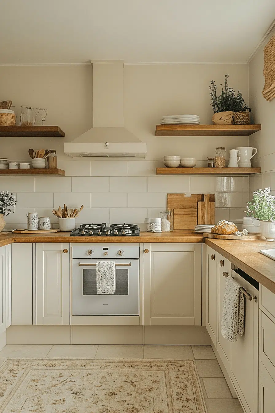 A soft neutrals palette brings warmth and serenity to your tiny cottage kitchen without overwhelming the space. Gentle beige, cream, and ivory tones create a clean and timeless backdrop. These hues reflect light beautifully, making the kitchen feel more open and airy. Soft neutrals pair effortlessly with wood accents or light-toned countertops. They also allow your decor and kitchenware to stand out subtly.