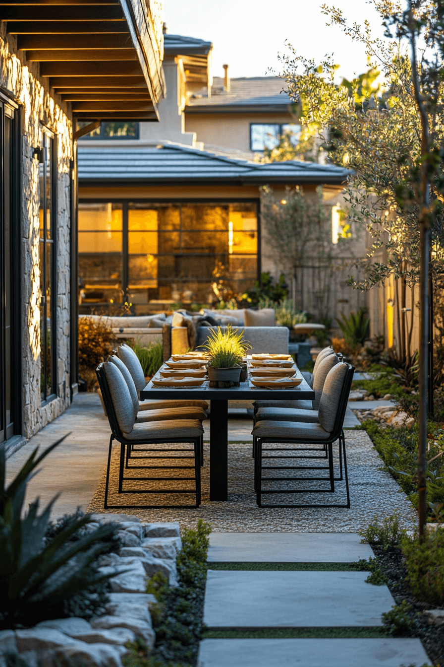 Sophistication in tiny patio ideas focuses on clean symmetry and refined finishes. Neutral palettes paired with elegant seating elevate the design. Minimalist décor adds balance without clutter. Evening lighting creates a polished ambiance that enhances usability. This patio style feels timeless, chic, and practical. Tap now to see more sophisticated patio inspirations.