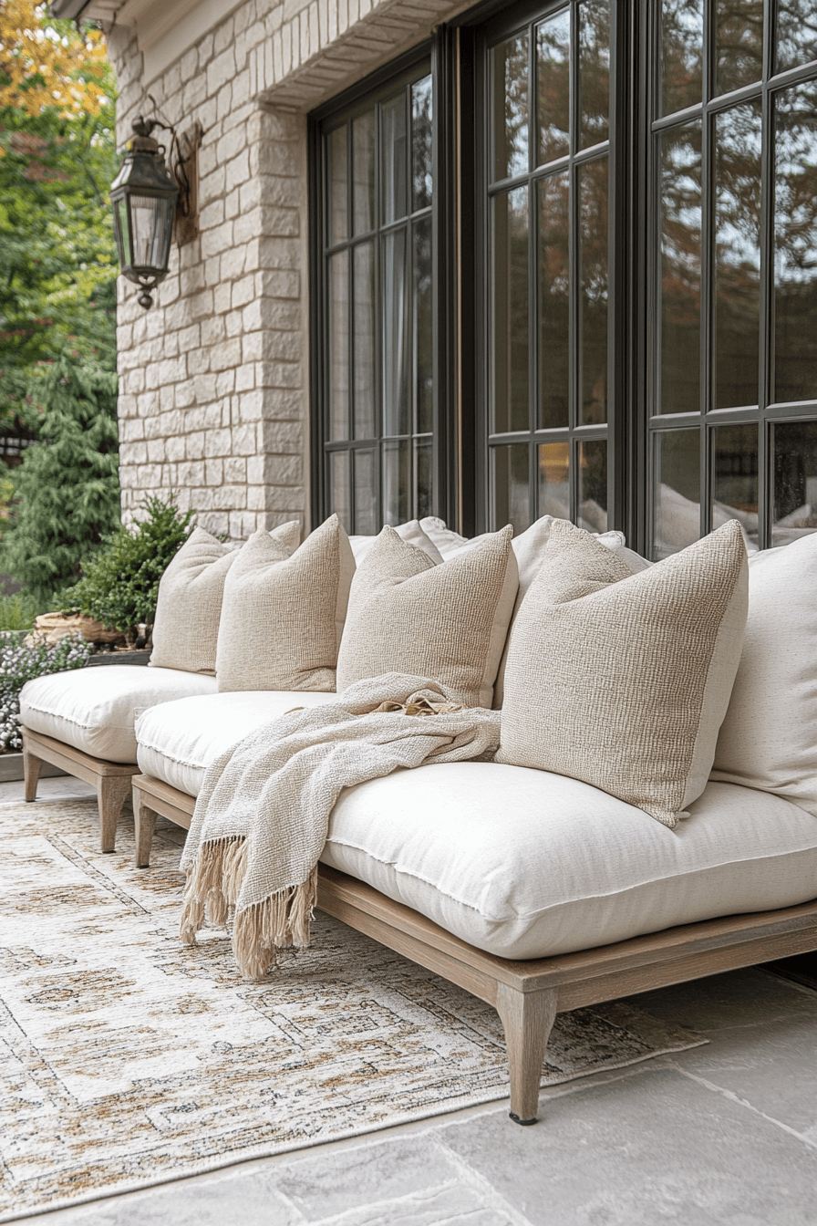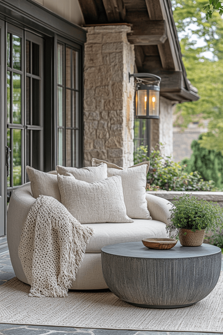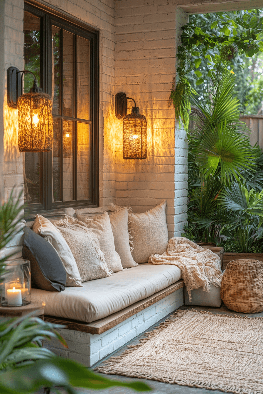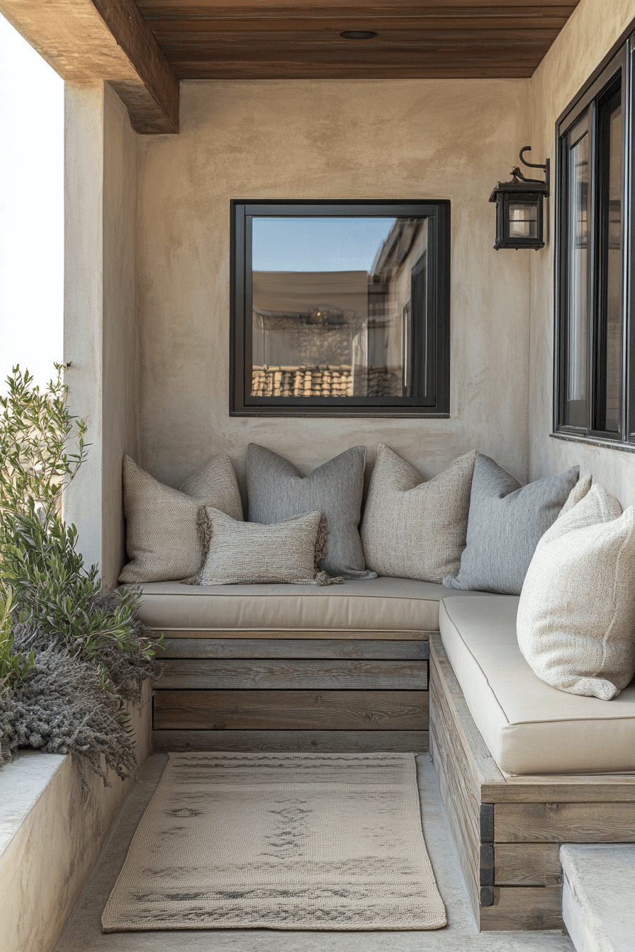 Cozy corners transform tiny patio ideas into welcoming retreats perfect for lounging or reading. Compact seating like cushioned benches or small loveseats create intimate nooks. Neutral fabrics and soft throws add warmth without taking up much space. Smart lighting enhances the mood, making evenings outside feel magical. This approach shows that tiny patios can still feel like a personal getaway. Tap to see how to design your own cozy outdoor corner.