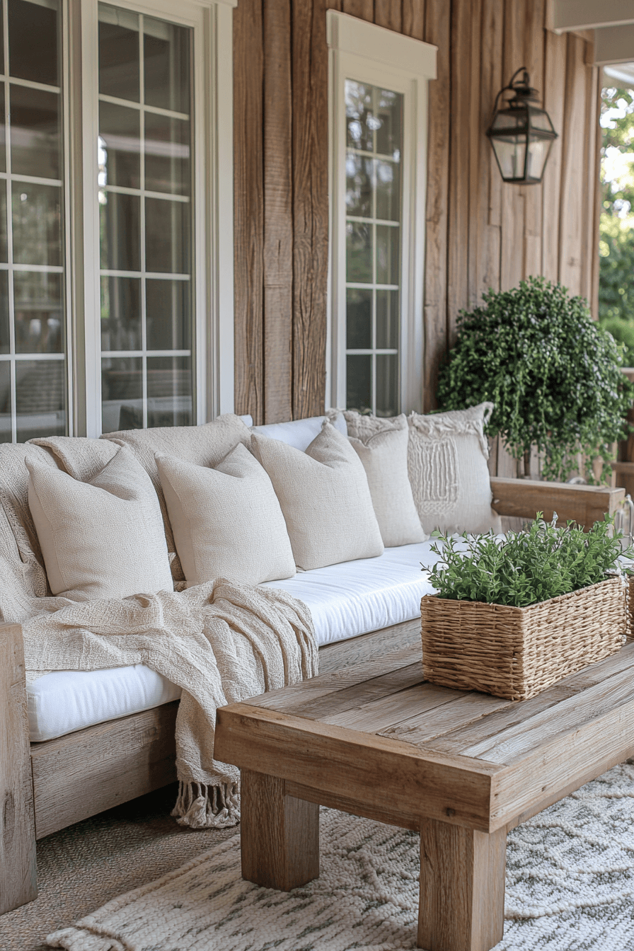 Neutral styling defines tiny patio ideas that feel modern and timeless. Soft beige, cream, and gray tones establish balance. Wooden or stone textures add subtle depth. Layered textiles make the space inviting without overcrowding. This aesthetic blends simplicity with charm perfectly. Click here to explore more neutral patio looks.
