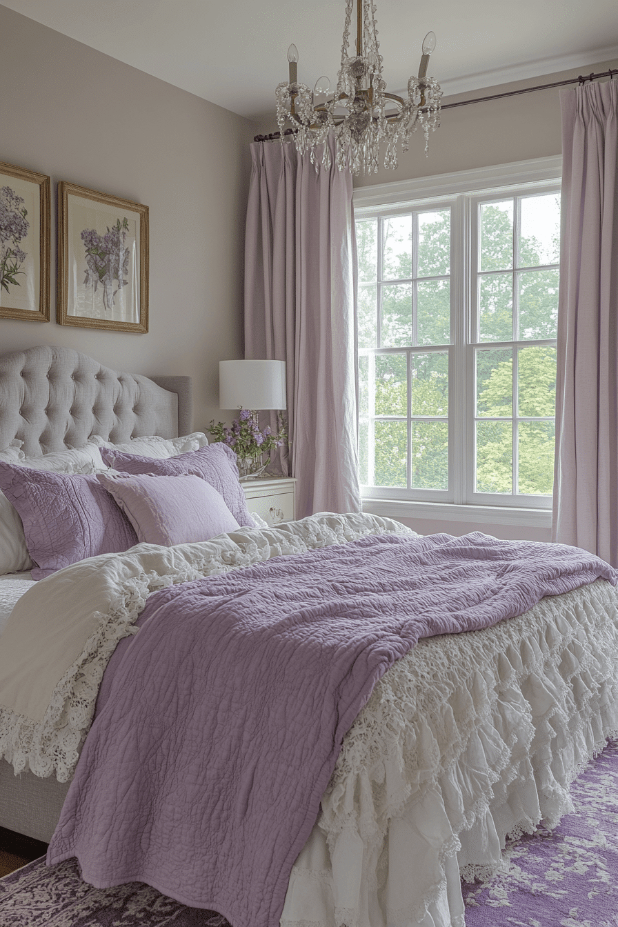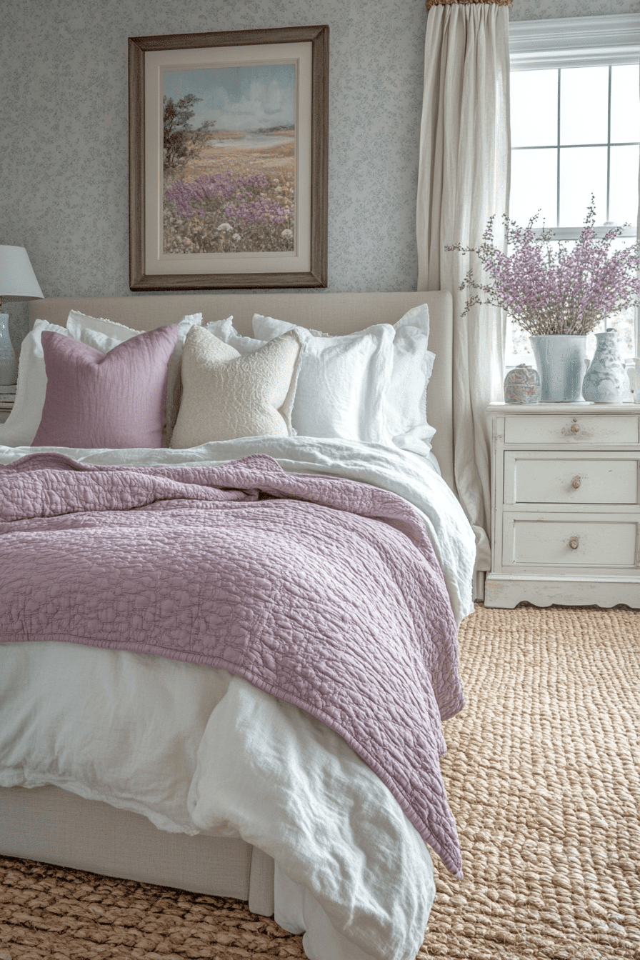 Dusty lavender tones bring quiet beauty and vintage charm to a shabby chic bedroom. Use it in bedding, wall color, or accent pieces for subtle interest. The soft purple pairs beautifully with ivory, white, and faded gray. Combined with ruffled fabrics and antique details, it feels romantic and peaceful. It’s an elegant color choice that remains timeless. Click now to explore dusty lavender bedrooms.