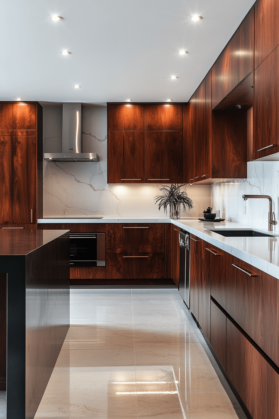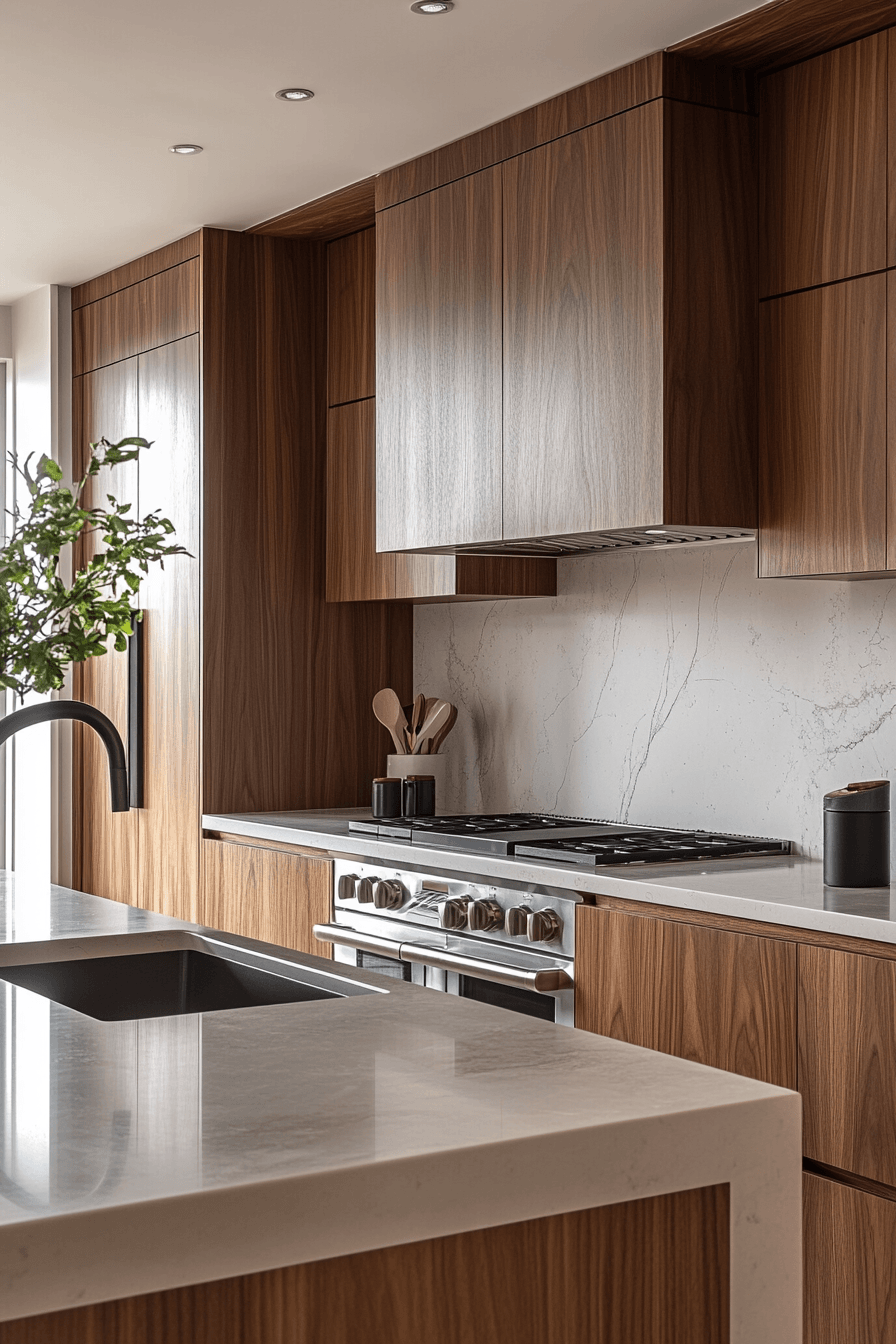 There’s something quietly powerful about a kitchen that doesn’t scream for attention—the walnut grain does the talking while you actually enjoy cooking.