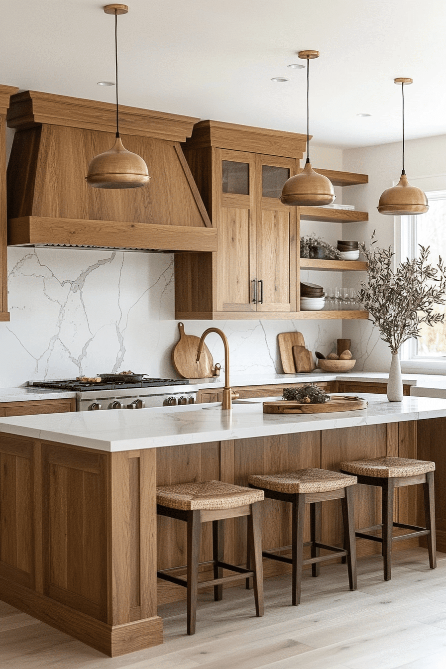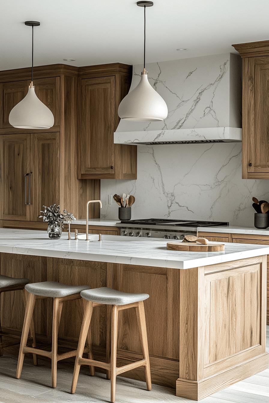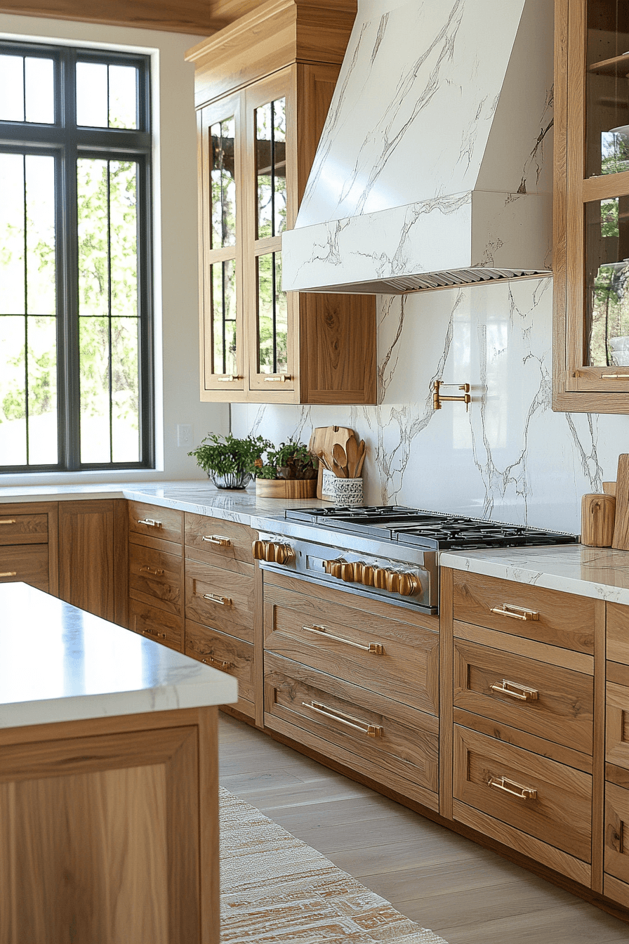 There’s something deeply grounding about cooking in a space where the wood feels alive—this kitchen balances that warmth with crisp marble so you never sacrifice sophistication for comfort.