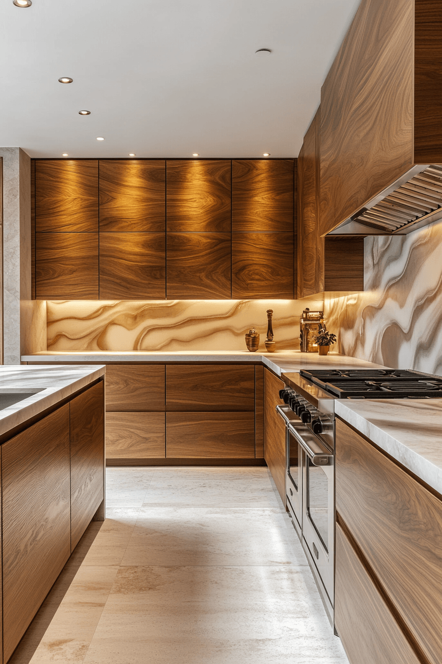 There’s something quietly luxurious about walking into a kitchen where the wood grain flows uninterrupted from wall to wall; it feels less like furniture and more like architecture.