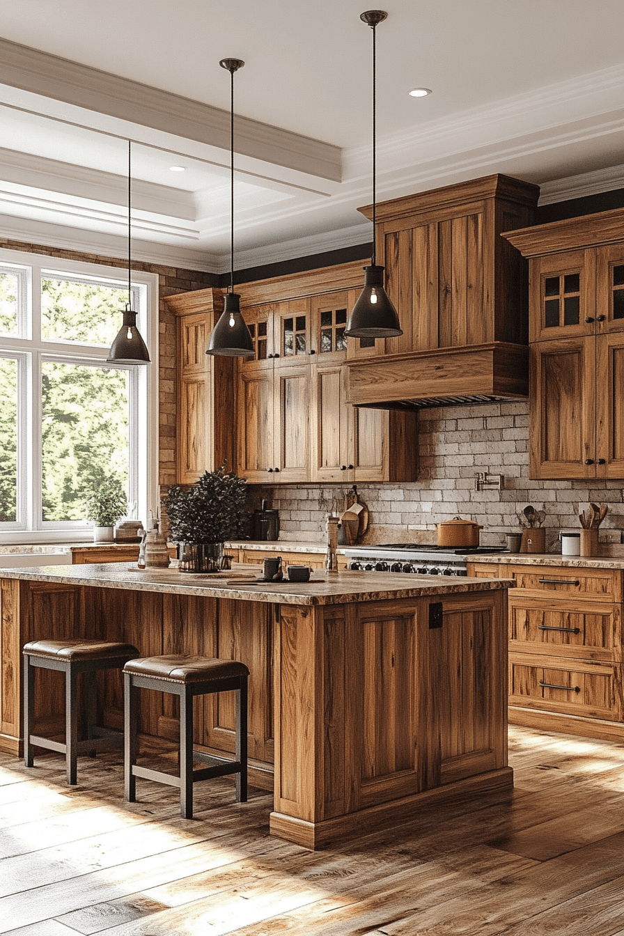 This kitchen feels like Sunday morning pancakes with the kids—warm, unpretentious, and built for real life. The wood grain everywhere wraps you in that cabin-cozy feeling without sacrificing modern function.