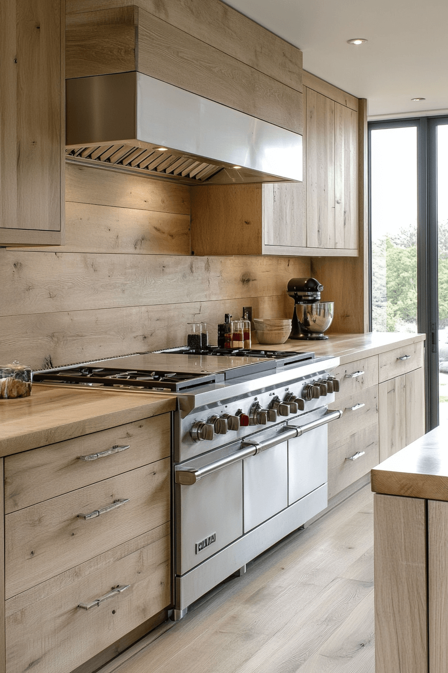 Luxe Larch Loft wooden kitchen cabinets bring a bright and cheerful feel to the kitchen with their light color and prominent grain. Larch is a durable wood that holds up well under frequent use, making it suitable for a busy kitchen. Its pale hues can make the kitchen appear larger and more open, ideal for loft-style apartments or open floor plans. These cabinets pair beautifully with industrial elements, providing a modern yet warm aesthetic.