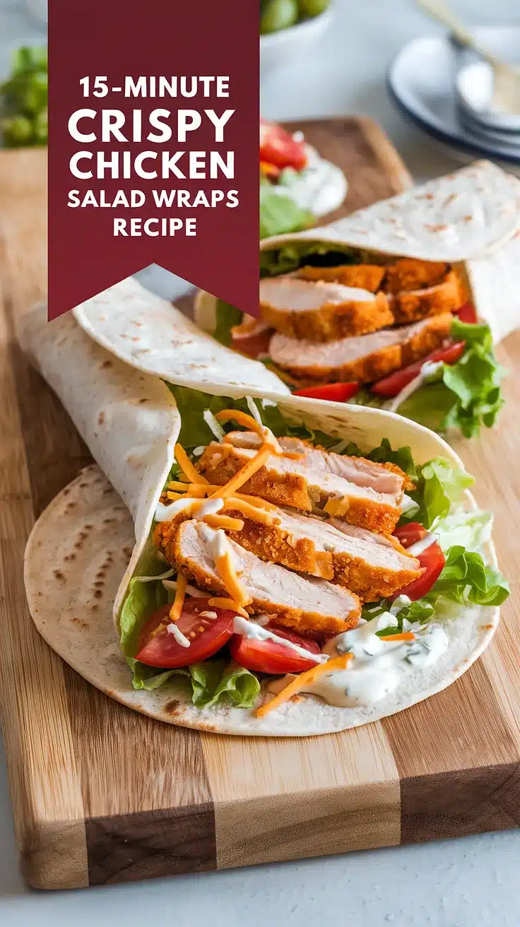 Looking for a meal that comes together in a flash without sacrificing flavor? Look no further than these 15-Minute Crispy Chicken Salad Wraps! They’re perfect for a quick lunch, a light dinner, or a satisfying snack. With crispy chicken, fresh vegetables, and a zesty dressing all wrapped up in a soft tortilla, this recipe is a lifesaver for busy days.
