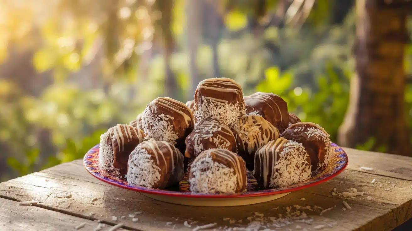 Imagine rolling a mixture of soft dates, crunchy nuts, and a hint of cocoa powder into delightful little bites, then coating them in shredded coconut. Each bite is a burst of flavor that combines the creaminess of chocolate with the chewy texture of dates. It’s a snack that’s perfect for energy boosts or satisfying cravings, all while being incredibly easy to make.