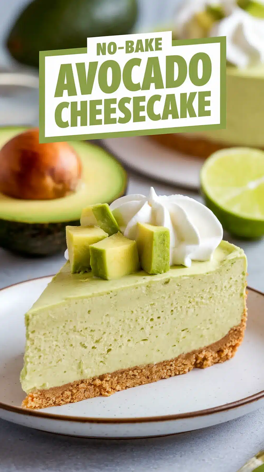 This No-Bake Avocado Cheesecake features a buttery graham cracker crust layered with a smooth filling made from ripe avocados, cream cheese, and a hint of lime. It’s a delightful balance of flavors, with the creamy richness of the cheesecake complemented by the freshness of the avocado, creating a dessert that’s both unique and delicious.