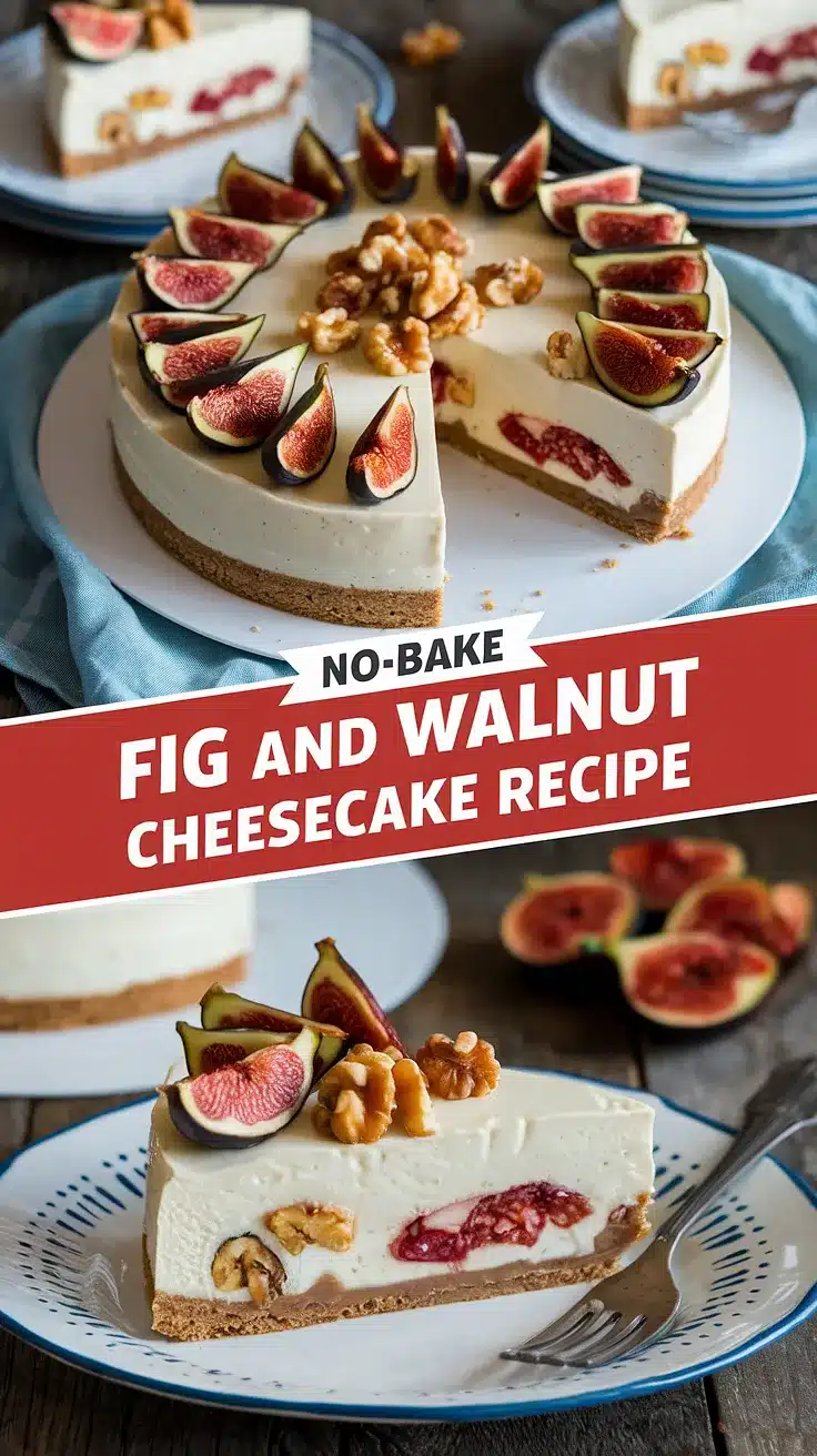This No-Bake Fig and Walnut Cheesecake features a creamy filling made from smooth cream cheese, whipped cream, and a hint of honey, perfectly balanced with a crunchy walnut crust. The addition of fresh figs on top adds not just flavor, but also a beautiful presentation.