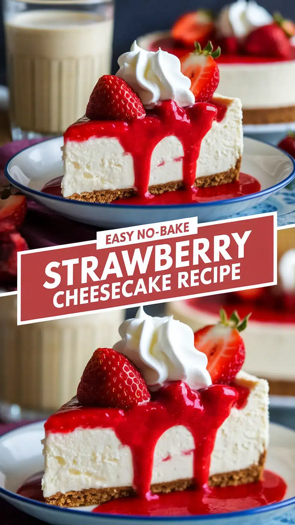 Whether you’re hosting a party or enjoying a quiet night in, this No-Bake Strawberry Cheesecake is a delightful addition to any occasion. It’s light, refreshing, and brings a touch of sweetness that everyone will love.