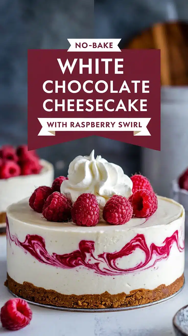 No-Bake White Chocolate Cheesecake with Raspberry Swirl Recipe